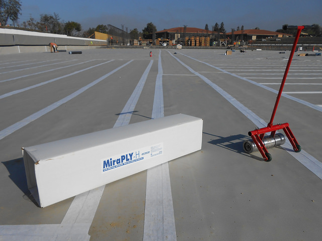 - Durable – Pliable TPO layer has superior puncture resistance compared to HDPE, making MiraPLY the best system to meet the active demands of heavily trafficked construction sites and uneven rocky substrates.