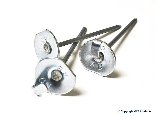 Stainless steel lacing anchors are available in a number of sizes and gauges of steel. These lacing anchors are essentially large nails with hooked heads. Lacing anchors are used to secure insulation to the areas it insulates. During installation, an anchor is pushed through the front of an insulation blanket or board so that the hooked head is snug against it.