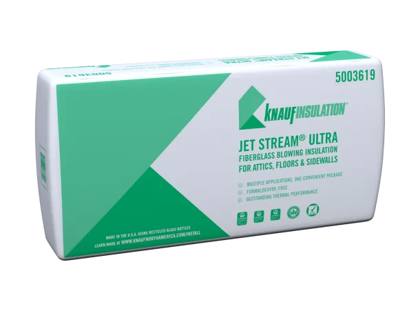 Jet Stream® ULTRA Blowing Insulation is an unbonded fiberglass blowing insulation designed with optimal thermal properties in addition to excellent coverage and blowing characteristics.