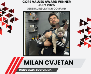 We are excited to announce June’s winner of General Insulation Company’s Core Values Award. Please take a moment to congratulate Milan Cvjetan, Inside Sales, Boston, for being July’s Core Values Award Winner! Congratulations, Milan! Your hard work and dedication to General Insulation have been noticed. We are proud of your achievement and we look forward to your continued success. Thank you for demonstrating our Core Values!